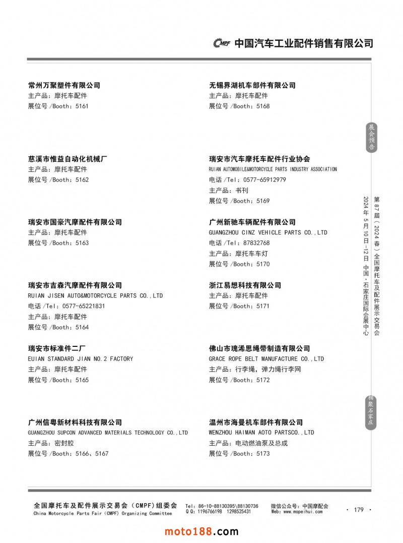 第86屆(2023秋)全國摩托車及配件展示交易會-廣州站參展企業(yè)信息