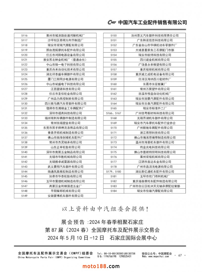 第86屆(2023秋)全國摩托車及配件展示交易會-廣州站參展單位名錄