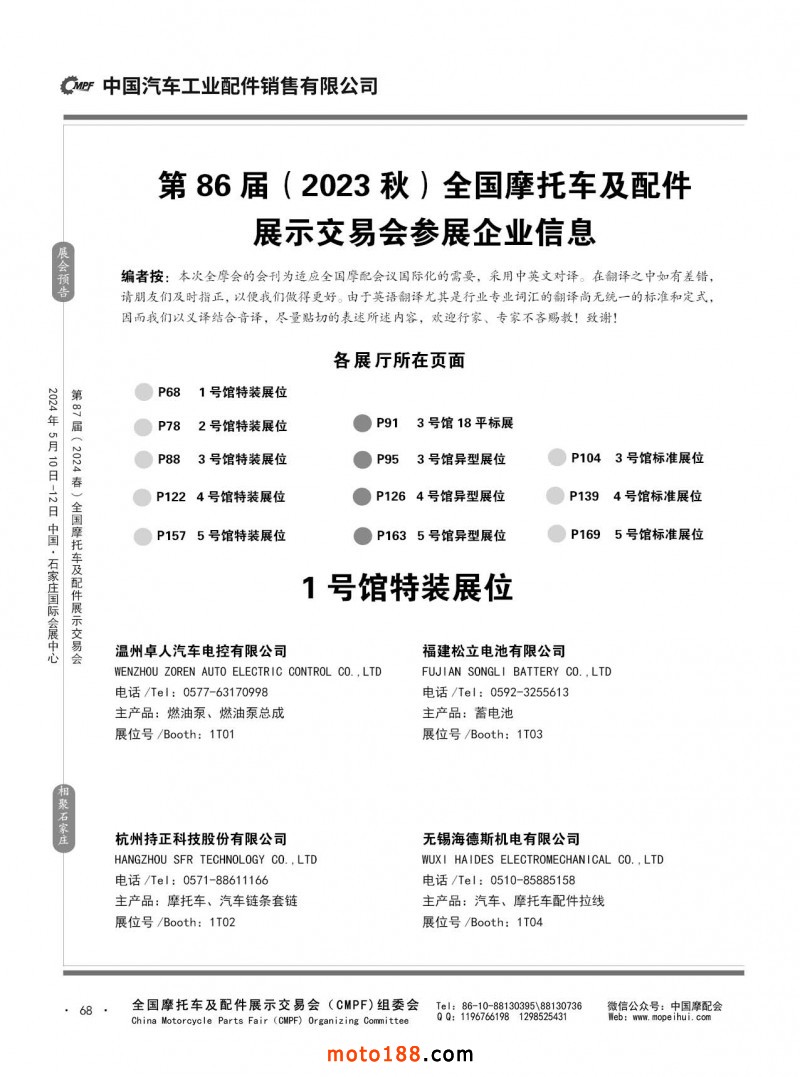 內68 第86屆(2023秋)全國摩托車及配件展示交易會-廣州站參展企業信息