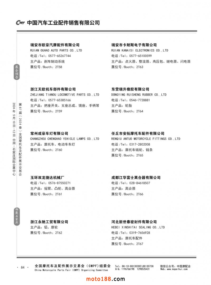 第86屆(2023秋)全國摩托車及配件展示交易會-廣州站參展企業信息