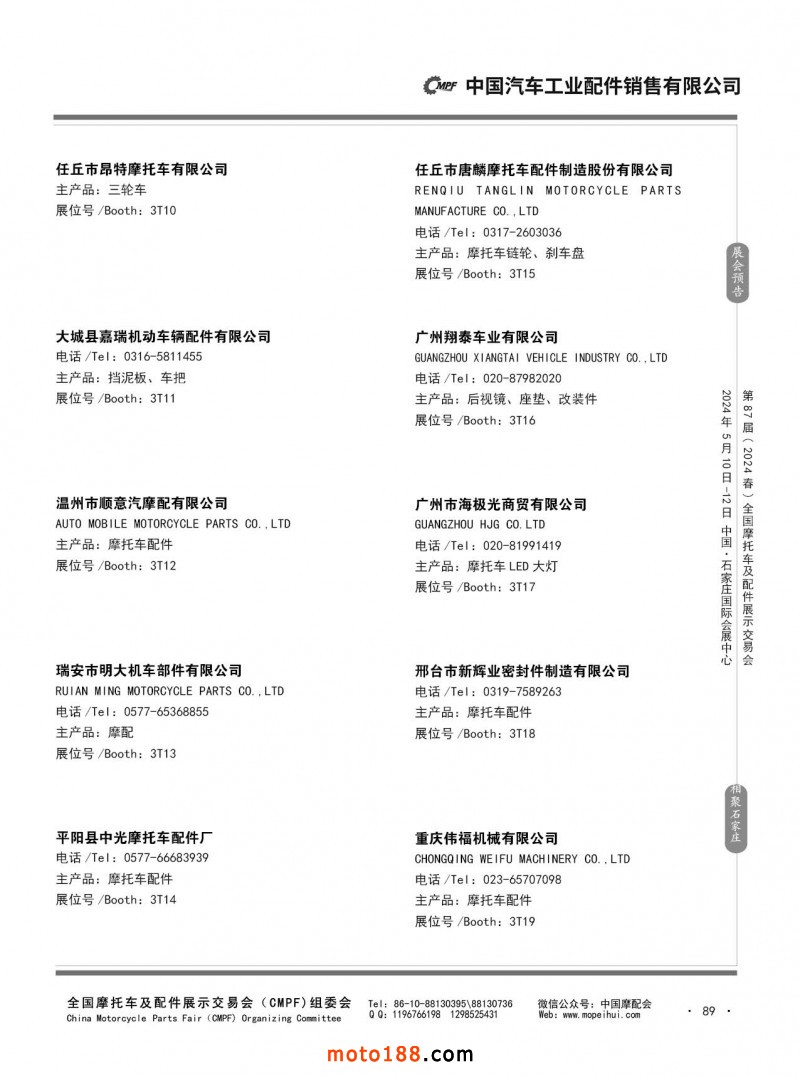 第86屆(2023秋)全國(guó)摩托車及配件展示交易會(huì)-廣州站參展企業(yè)信息