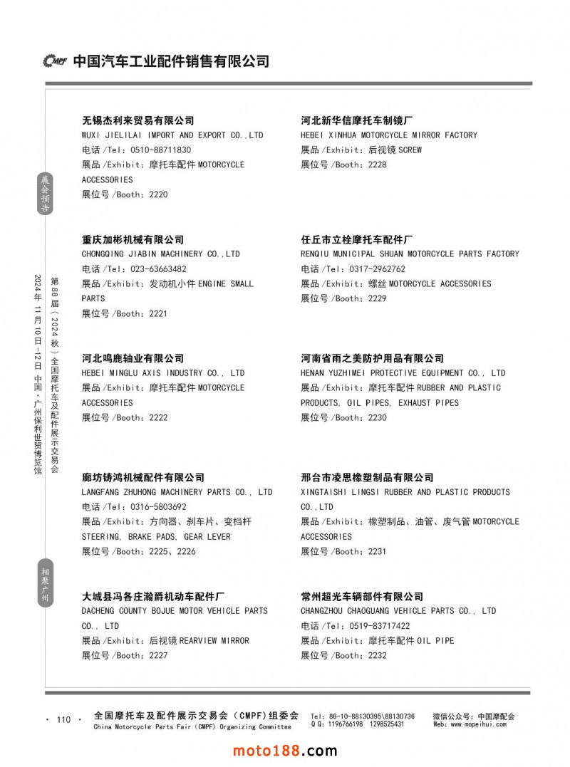 內56-132 第87屆(2024春)全國摩托車及配件展示交易會-石家莊站參展企業信息