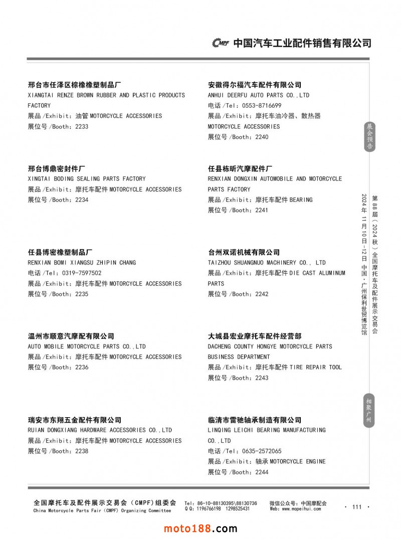 內56-132 第87屆(2024春)全國摩托車及配件展示交易會-石家莊站參展企業信息