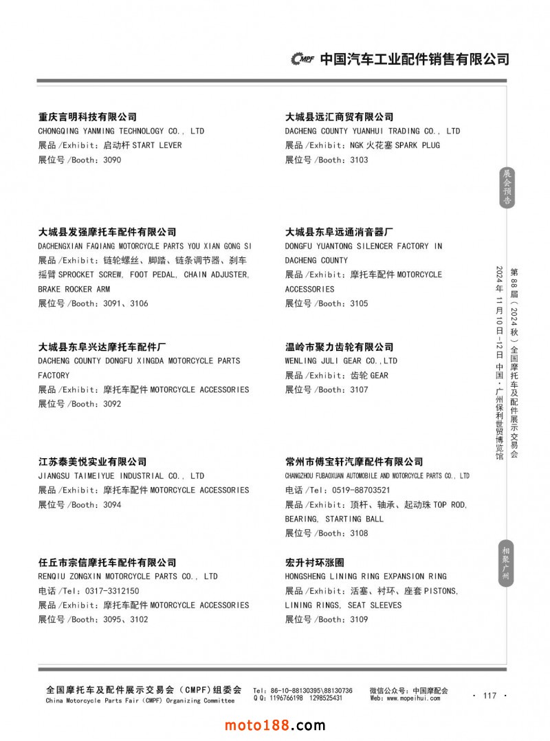 內56-132 第87屆(2024春)全國摩托車及配件展示交易會-石家莊站參展企業信息