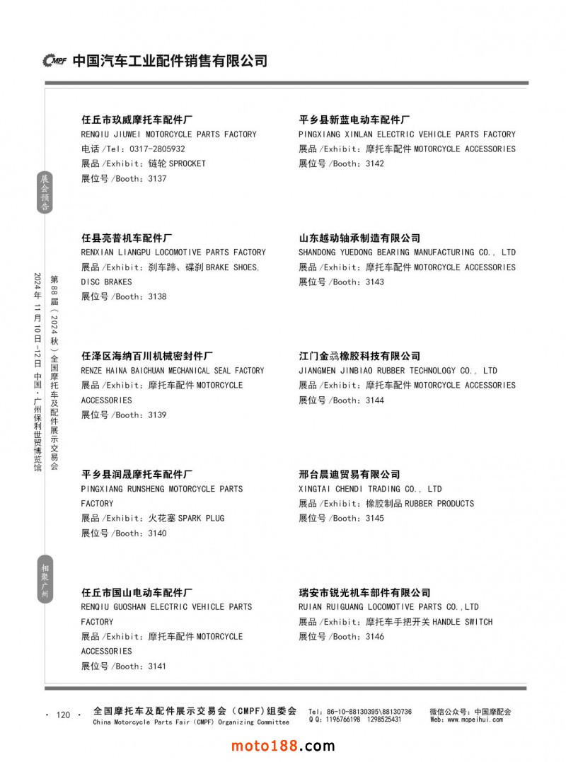 內(nèi)56-132 第87屆(2024春)全國(guó)摩托車及配件展示交易會(huì)-石家莊站參展企業(yè)信息