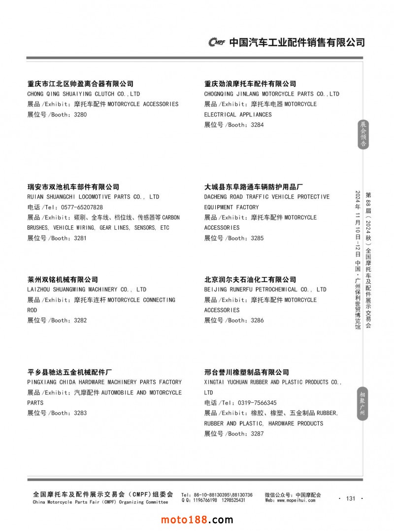 內56-132 第87屆(2024春)全國摩托車及配件展示交易會-石家莊站參展企業信息