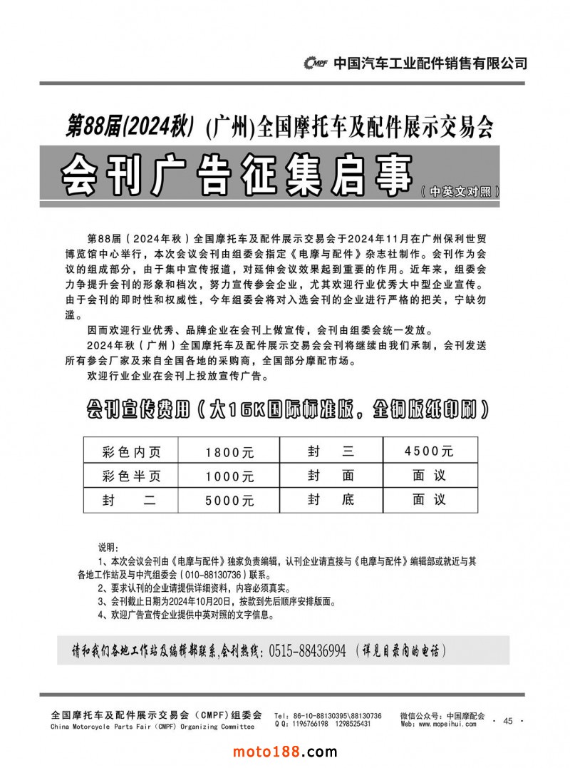 內45 第88屆(2024秋)全國摩托車及配件展示交易會-廣州站會刊征集啟事