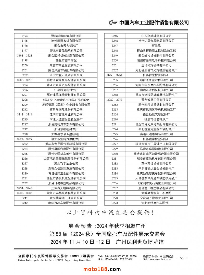 內(nèi)46-55 第87屆(2024春)全國摩托車及配件展示交易會-石家莊站參展單位名錄