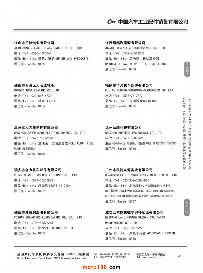 內56-132 第87屆(2024春)全國摩托車及配件展示交易會-石家莊站參展企業信息