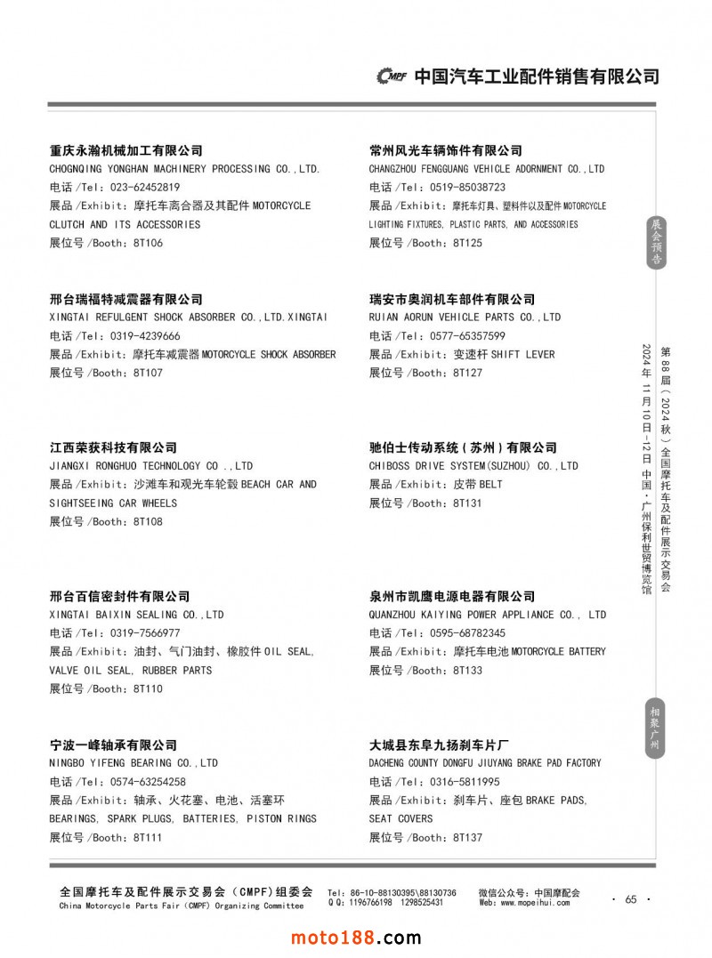 內56-132 第87屆(2024春)全國摩托車及配件展示交易會-石家莊站參展企業信息