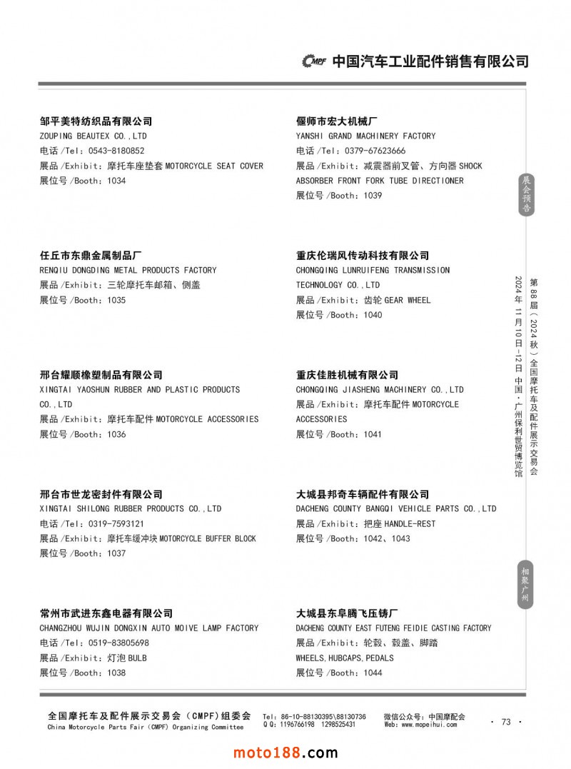 內(nèi)56-132 第87屆(2024春)全國摩托車及配件展示交易會-石家莊站參展企業(yè)信息