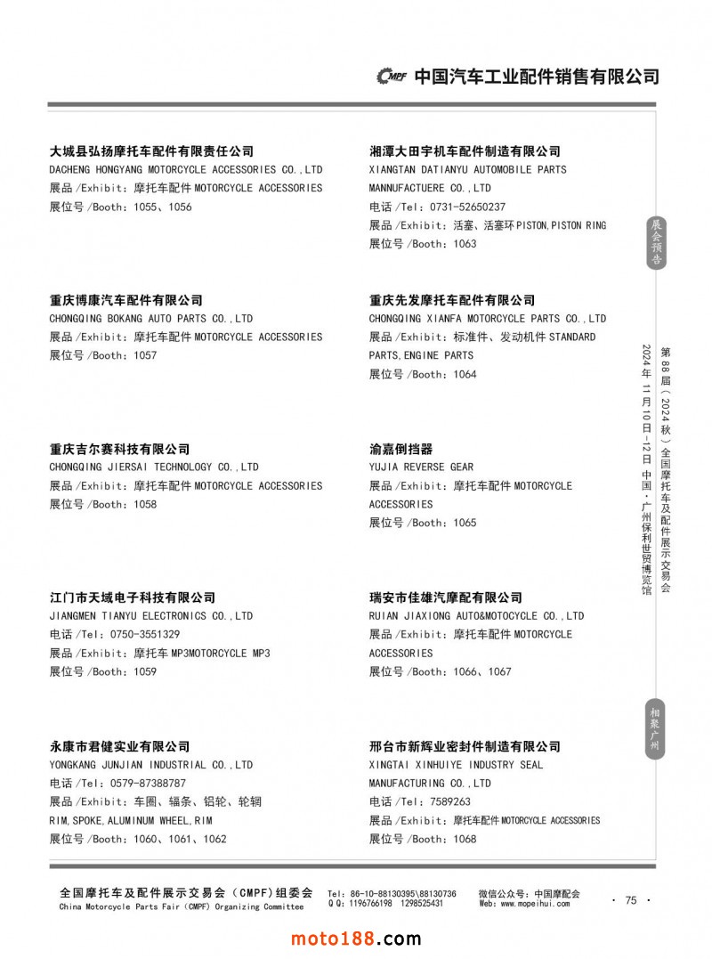 內(nèi)56-132 第87屆(2024春)全國摩托車及配件展示交易會-石家莊站參展企業(yè)信息