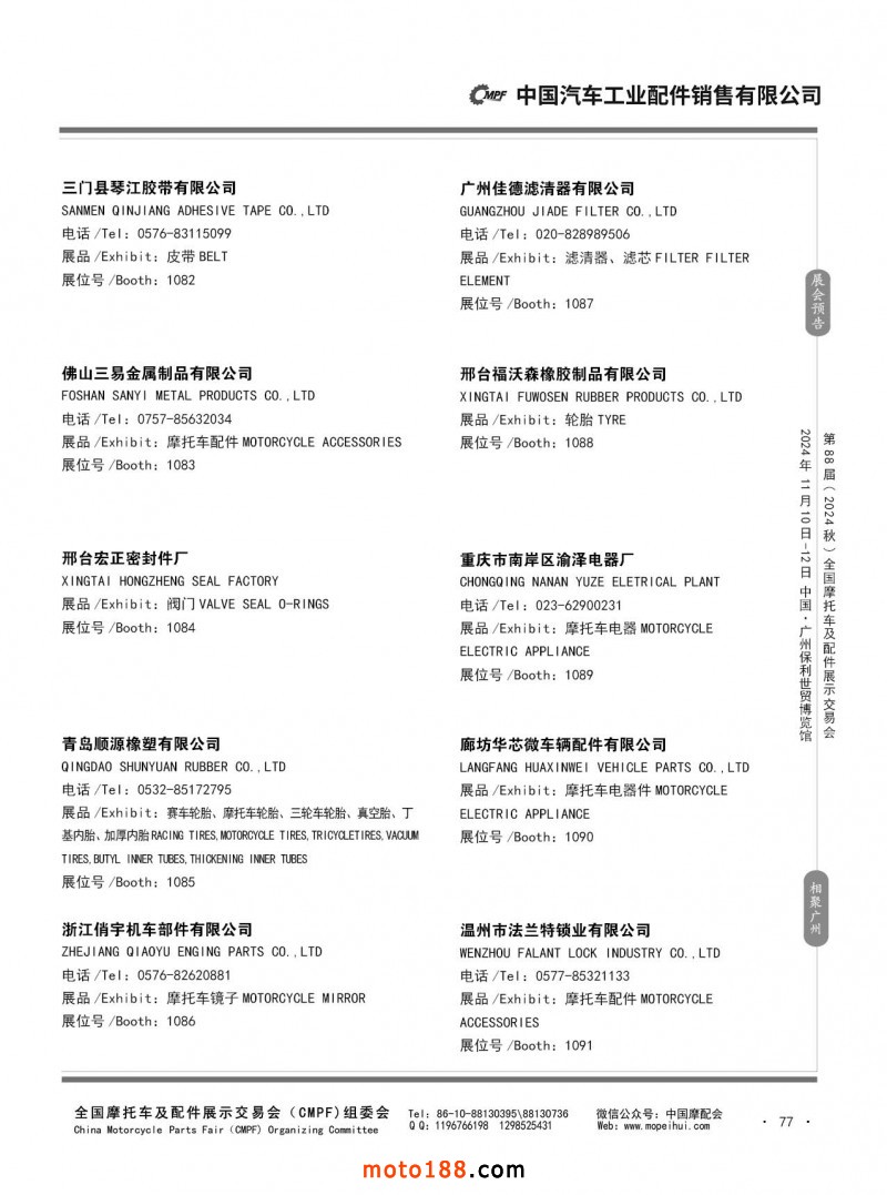 內56-132 第87屆(2024春)全國摩托車及配件展示交易會-石家莊站參展企業信息
