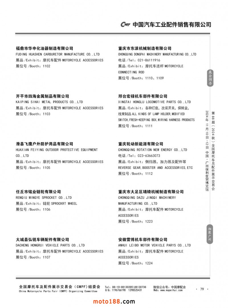 內(nèi)56-132 第87屆(2024春)全國摩托車及配件展示交易會-石家莊站參展企業(yè)信息
