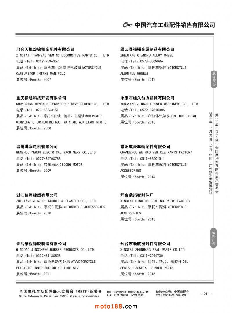 內56-132 第87屆(2024春)全國摩托車及配件展示交易會-石家莊站參展企業信息