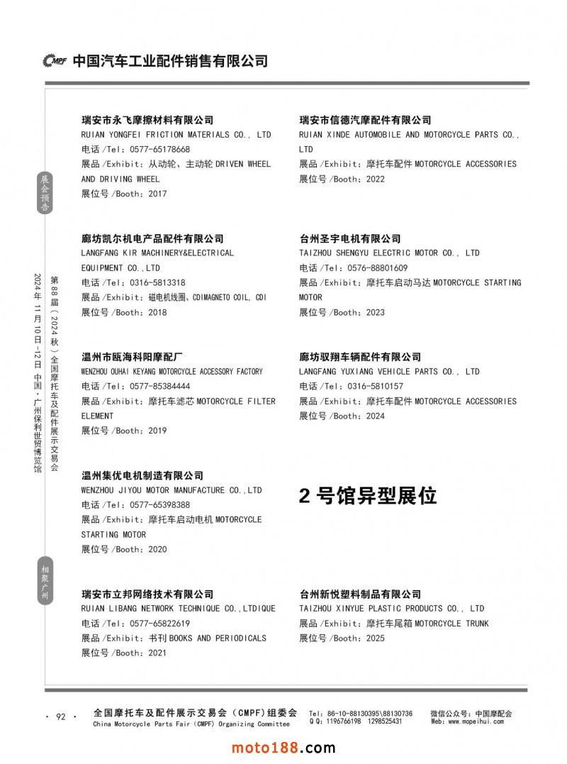 內56-132 第87屆(2024春)全國摩托車及配件展示交易會-石家莊站參展企業信息