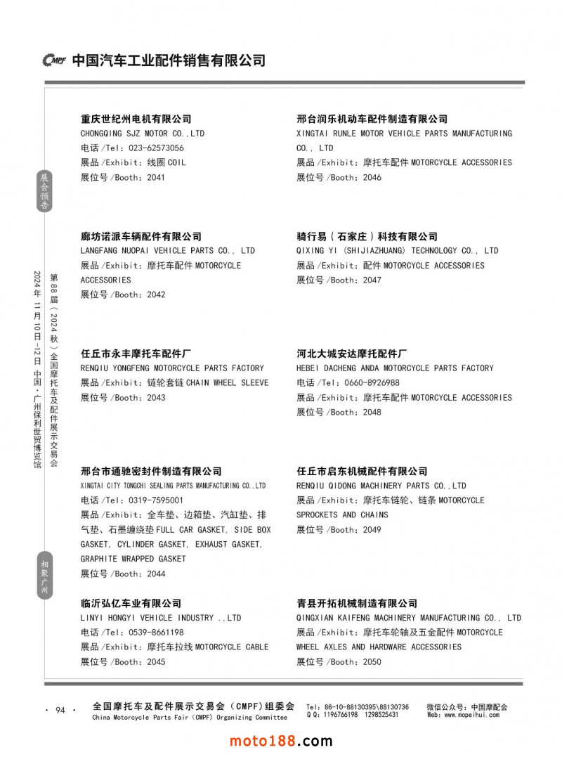 內(nèi)56-132 第87屆(2024春)全國摩托車及配件展示交易會-石家莊站參展企業(yè)信息