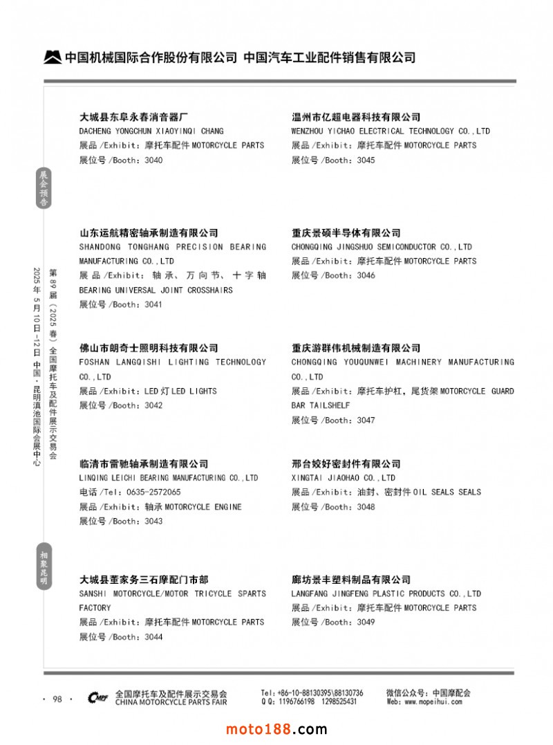 內(nèi)69-188 第88屆(2024秋)全國摩托車及配件展示交易會-廣州站參展企業(yè)信息