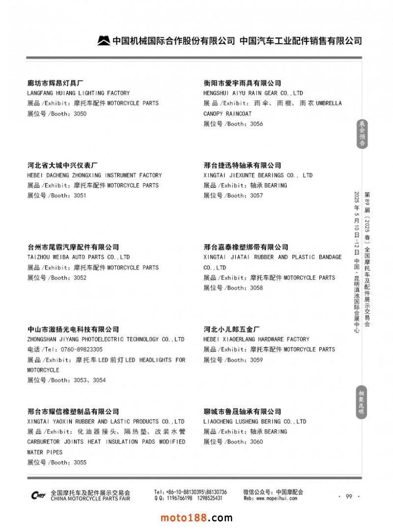 內69-188 第88屆(2024秋)全國摩托車及配件展示交易會-廣州站參展企業信息