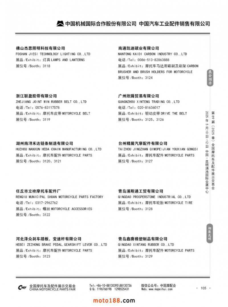 內69-188 第88屆(2024秋)全國摩托車及配件展示交易會-廣州站參展企業信息