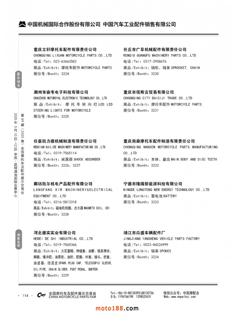 內(nèi)69-188 第88屆(2024秋)全國摩托車及配件展示交易會-廣州站參展企業(yè)信息