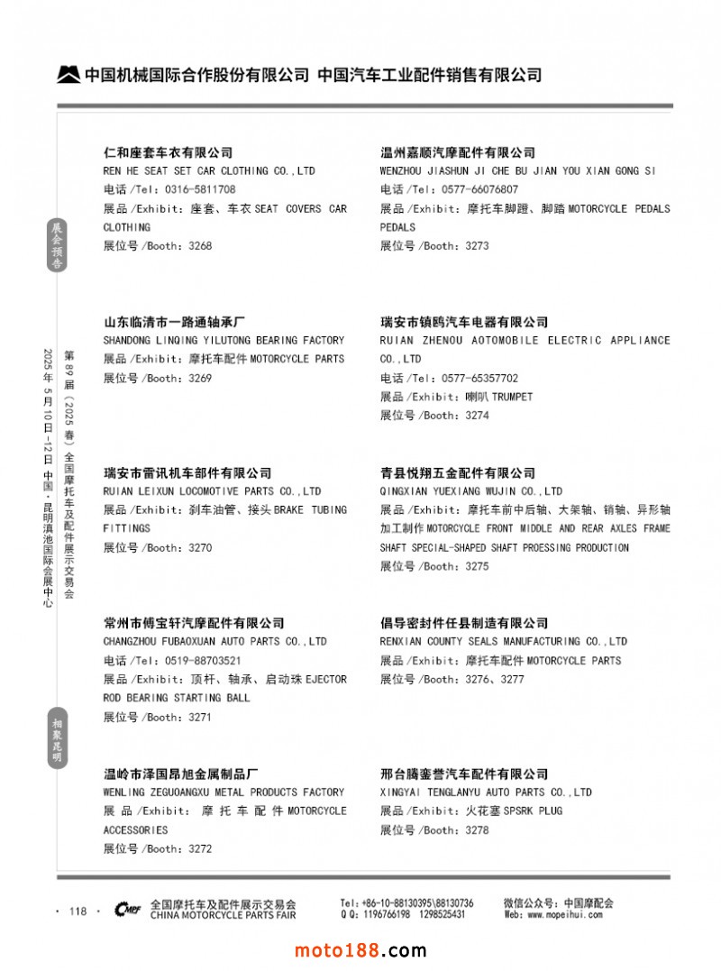 內69-188 第88屆(2024秋)全國摩托車及配件展示交易會-廣州站參展企業信息
