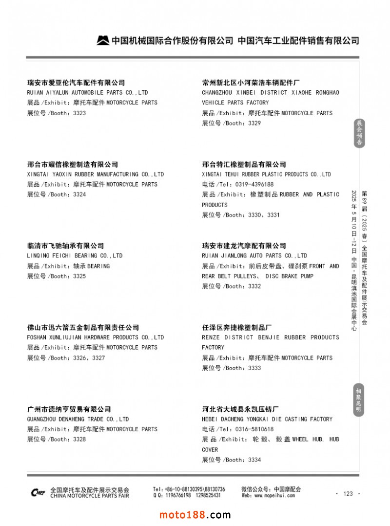內69-188 第88屆(2024秋)全國摩托車及配件展示交易會-廣州站參展企業信息