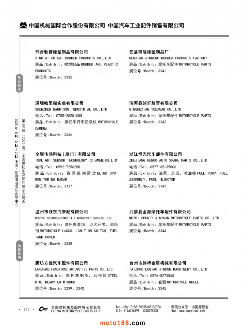 內69-188 第88屆(2024秋)全國摩托車及配件展示交易會-廣州站參展企業信息