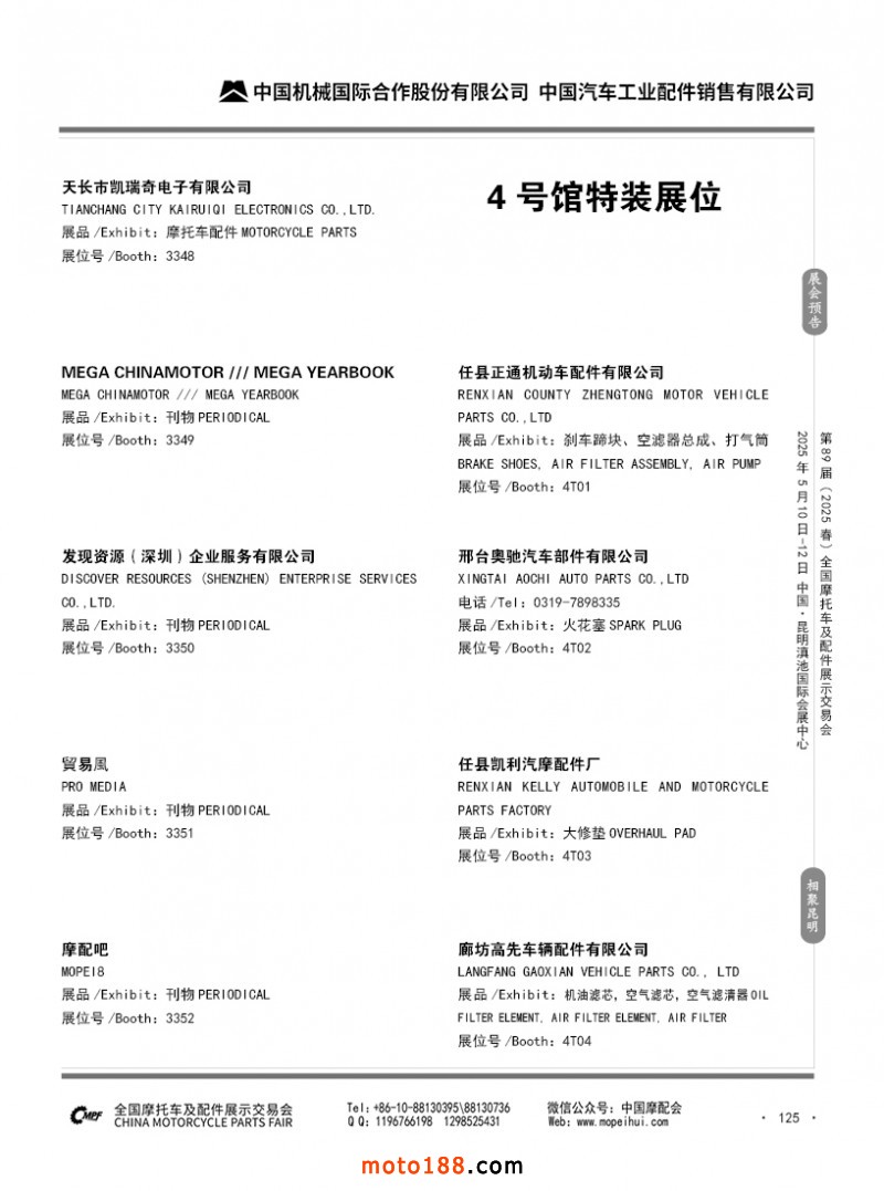 內69-188 第88屆(2024秋)全國摩托車及配件展示交易會-廣州站參展企業信息