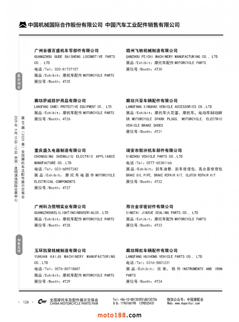 內(nèi)69-188 第88屆(2024秋)全國(guó)摩托車及配件展示交易會(huì)-廣州站參展企業(yè)信息