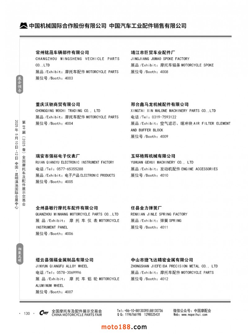 內69-188 第88屆(2024秋)全國摩托車及配件展示交易會-廣州站參展企業(yè)信息