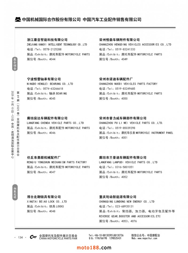 內69-188 第88屆(2024秋)全國摩托車及配件展示交易會-廣州站參展企業信息