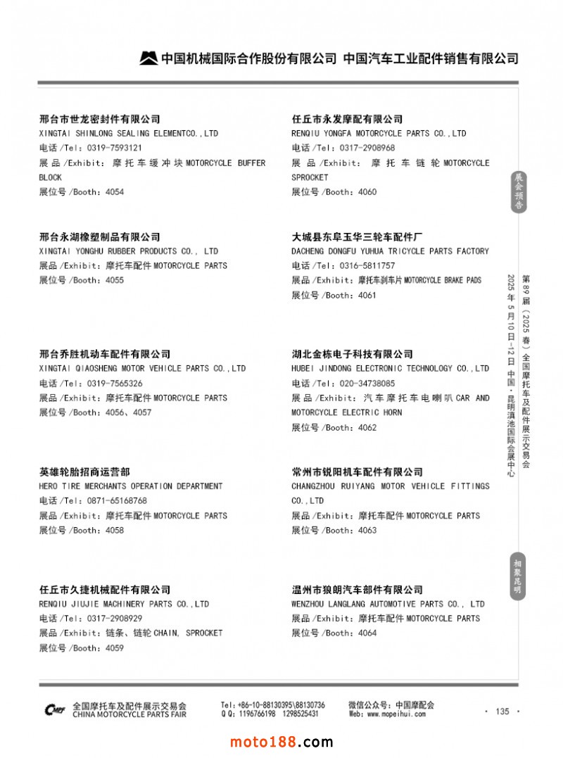 內69-188 第88屆(2024秋)全國摩托車及配件展示交易會-廣州站參展企業信息