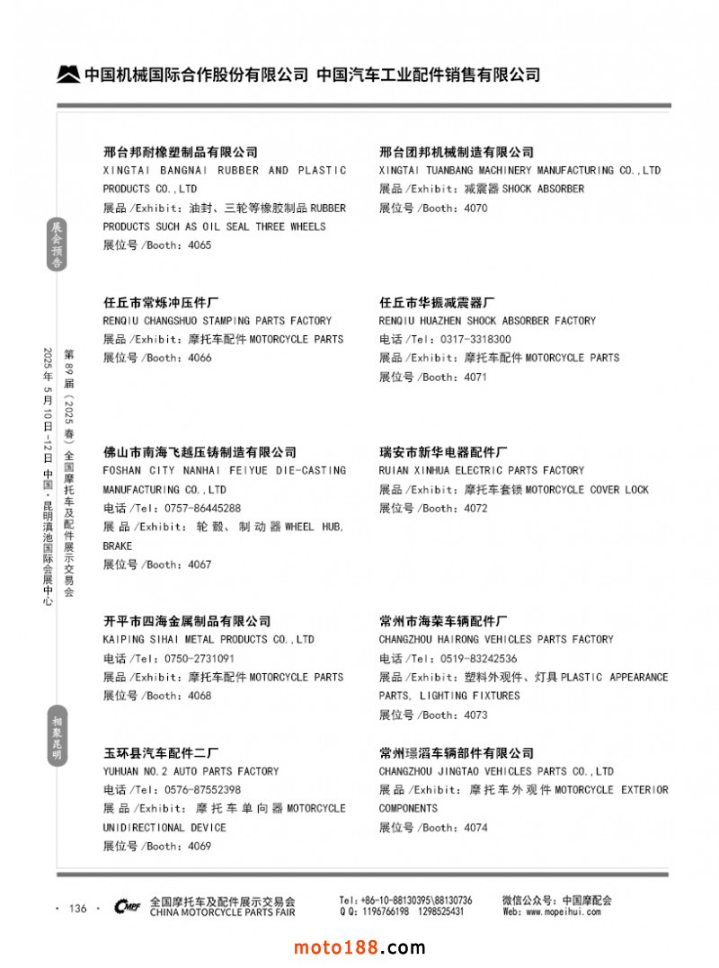 內(nèi)69-188 第88屆(2024秋)全國摩托車及配件展示交易會(huì)-廣州站參展企業(yè)信息
