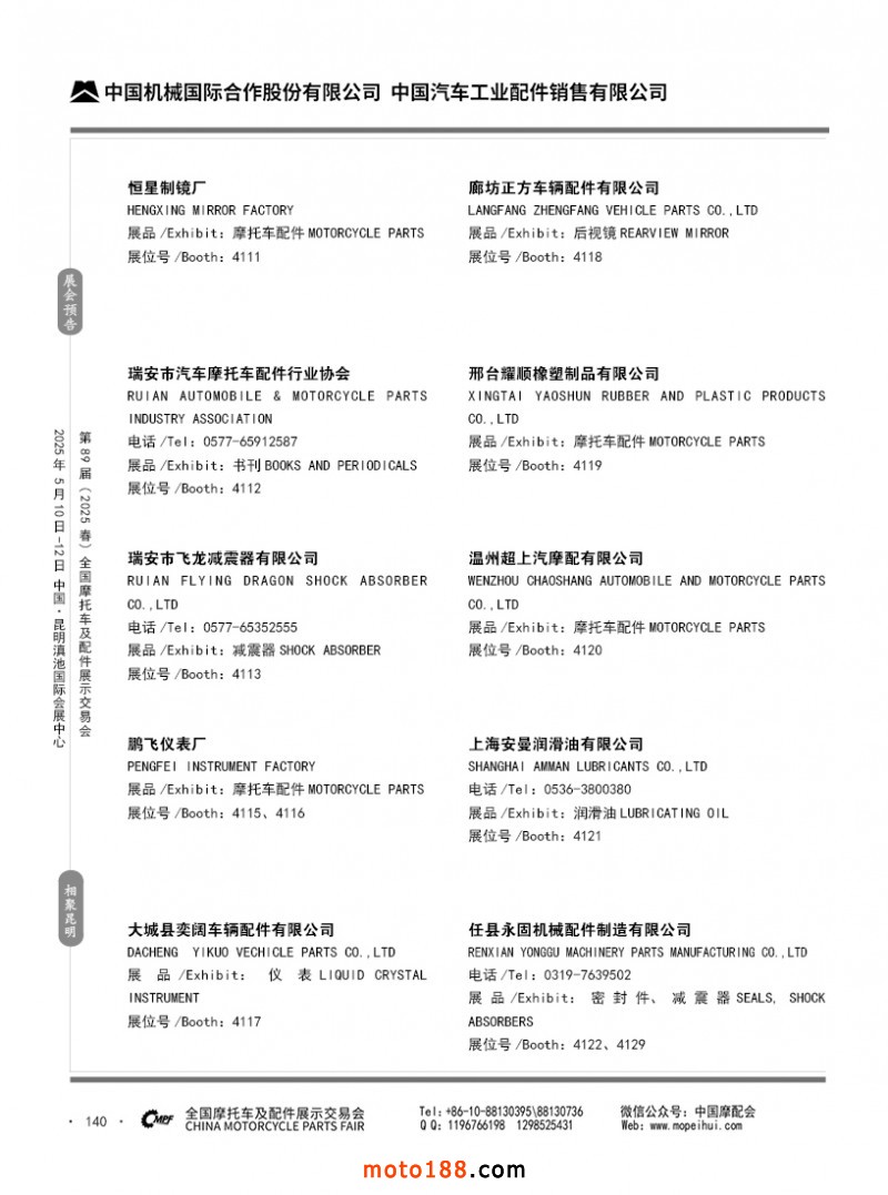 內69-188 第88屆(2024秋)全國摩托車及配件展示交易會-廣州站參展企業信息