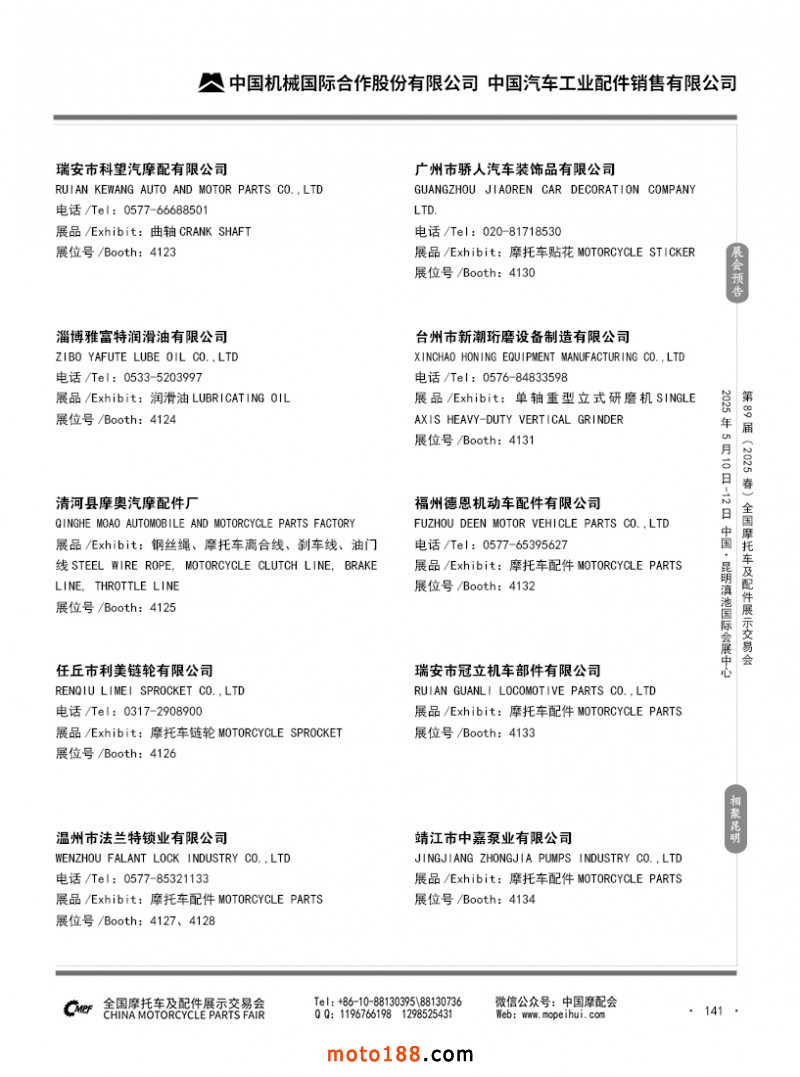 內69-188 第88屆(2024秋)全國摩托車及配件展示交易會-廣州站參展企業信息