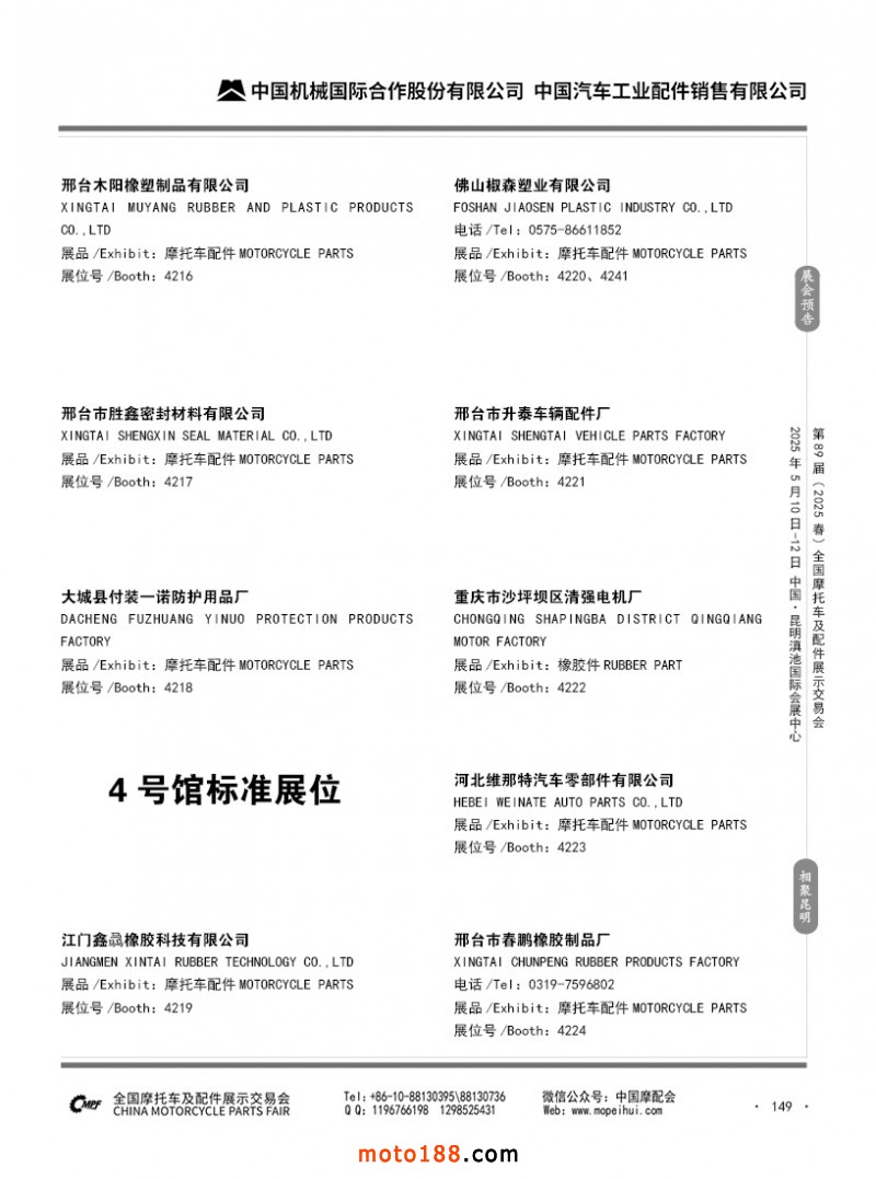 內69-188 第88屆(2024秋)全國摩托車及配件展示交易會-廣州站參展企業信息