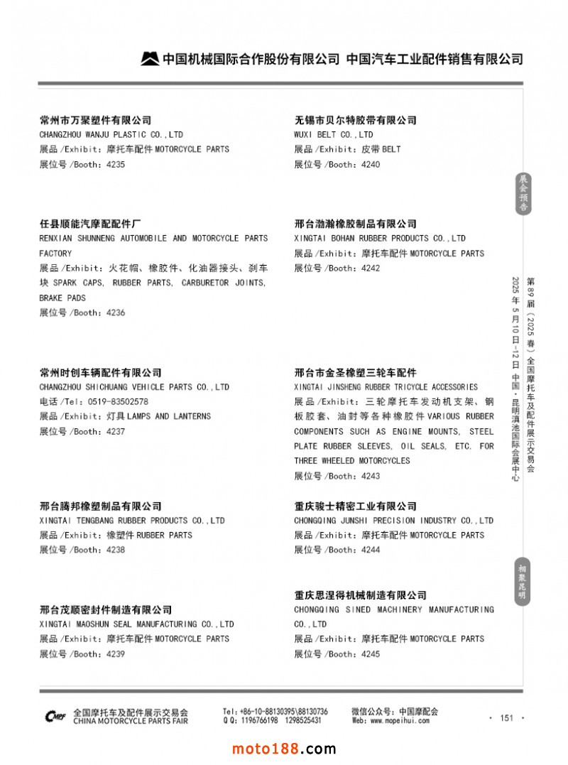 內(nèi)69-188 第88屆(2024秋)全國(guó)摩托車及配件展示交易會(huì)-廣州站參展企業(yè)信息
