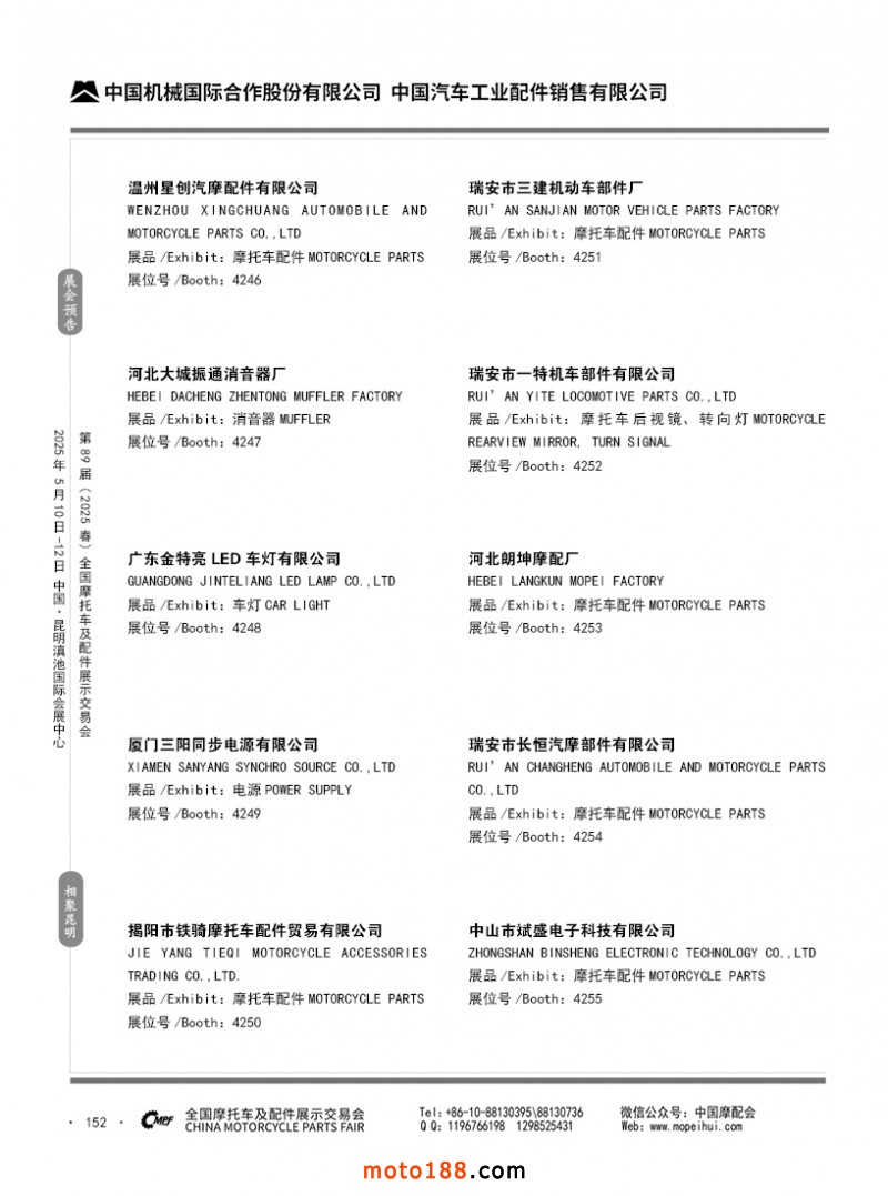 內69-188 第88屆(2024秋)全國摩托車及配件展示交易會-廣州站參展企業信息