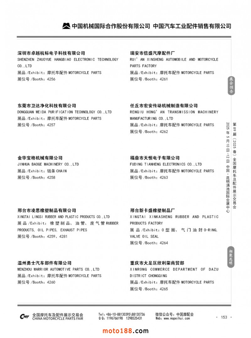 內69-188 第88屆(2024秋)全國摩托車及配件展示交易會-廣州站參展企業(yè)信息
