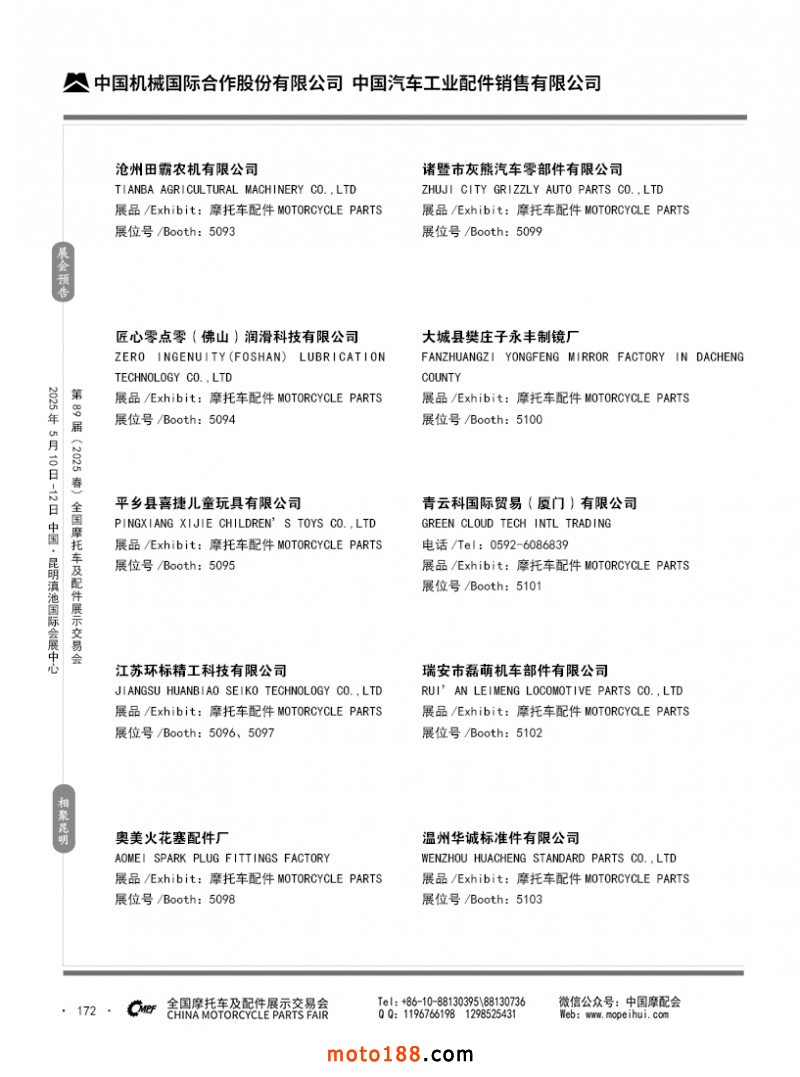 內(nèi)69-188 第88屆(2024秋)全國(guó)摩托車及配件展示交易會(huì)-廣州站參展企業(yè)信息