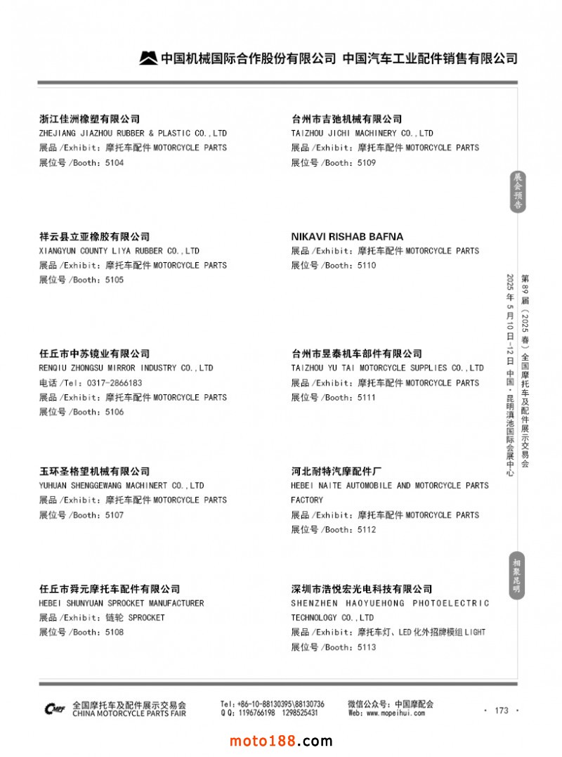 內69-188 第88屆(2024秋)全國摩托車及配件展示交易會-廣州站參展企業信息