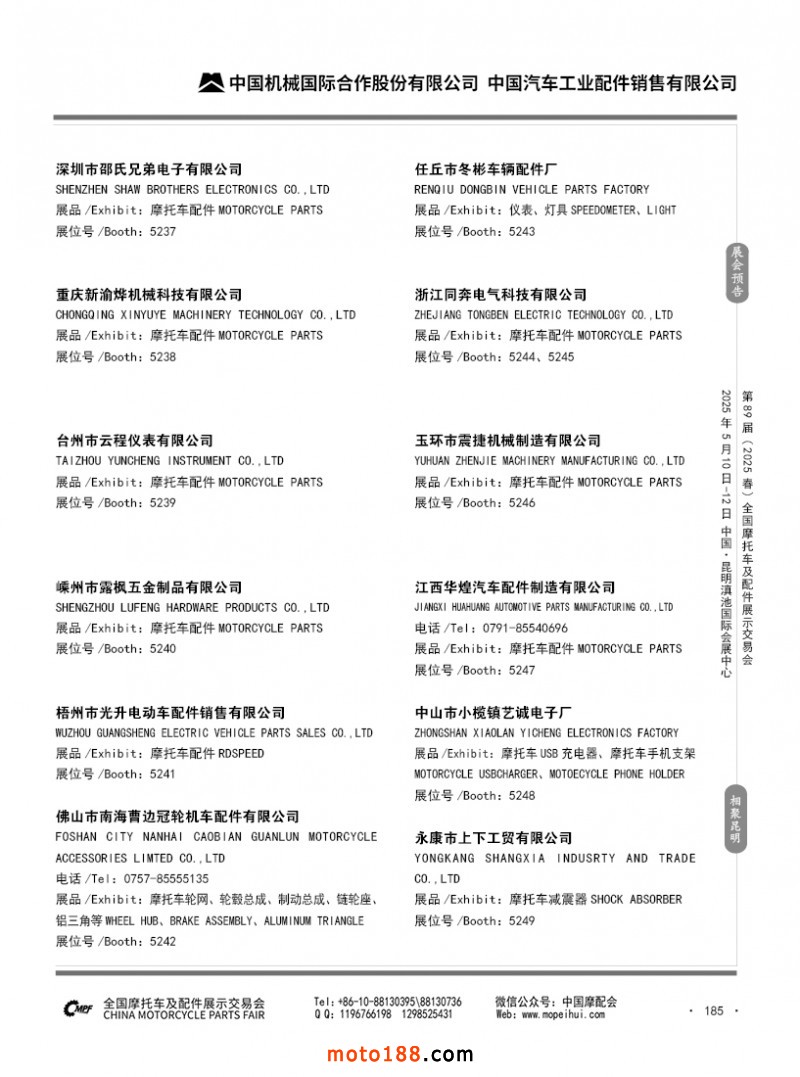 內(nèi)69-188 第88屆(2024秋)全國摩托車及配件展示交易會(huì)-廣州站參展企業(yè)信息