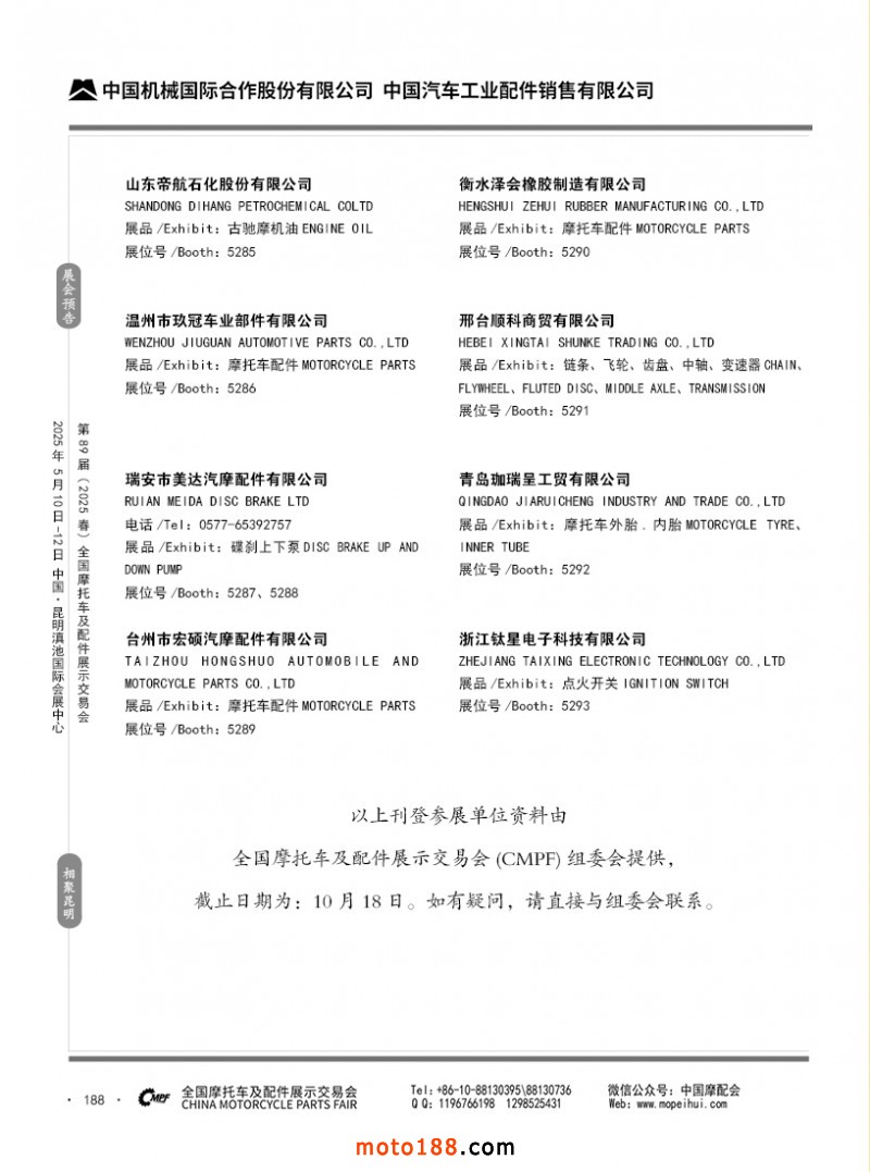 內(nèi)69-188 第88屆(2024秋)全國(guó)摩托車(chē)及配件展示交易會(huì)-廣州站參展企業(yè)信息