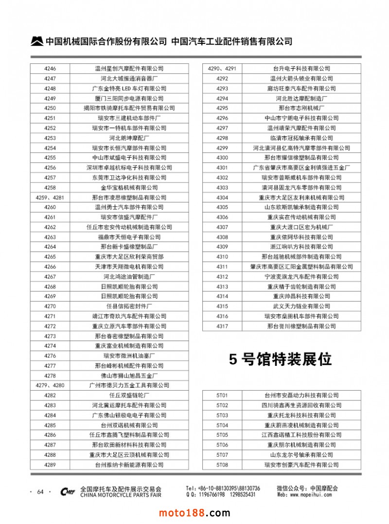內(nèi)53-68 第88屆(2024秋)全國(guó)摩托車及配件展示交易會(huì)-廣州站參展單位名錄