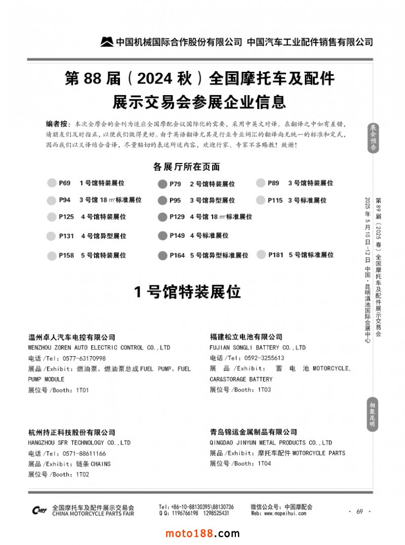 內(nèi)69-188 第88屆(2024秋)全國(guó)摩托車及配件展示交易會(huì)-廣州站參展企業(yè)信息