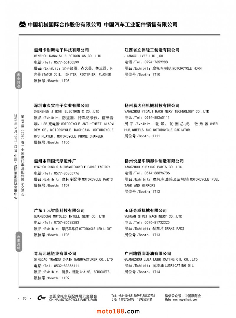 內69-188 第88屆(2024秋)全國摩托車及配件展示交易會-廣州站參展企業信息