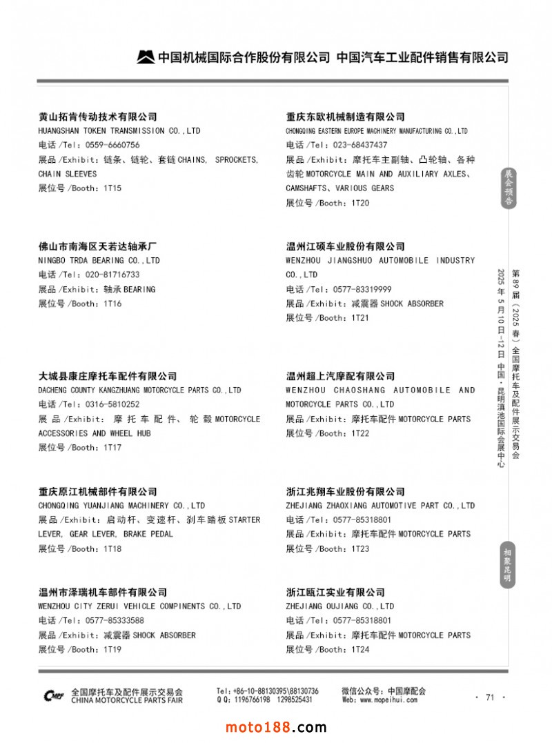 內(nèi)69-188 第88屆(2024秋)全國摩托車及配件展示交易會(huì)-廣州站參展企業(yè)信息