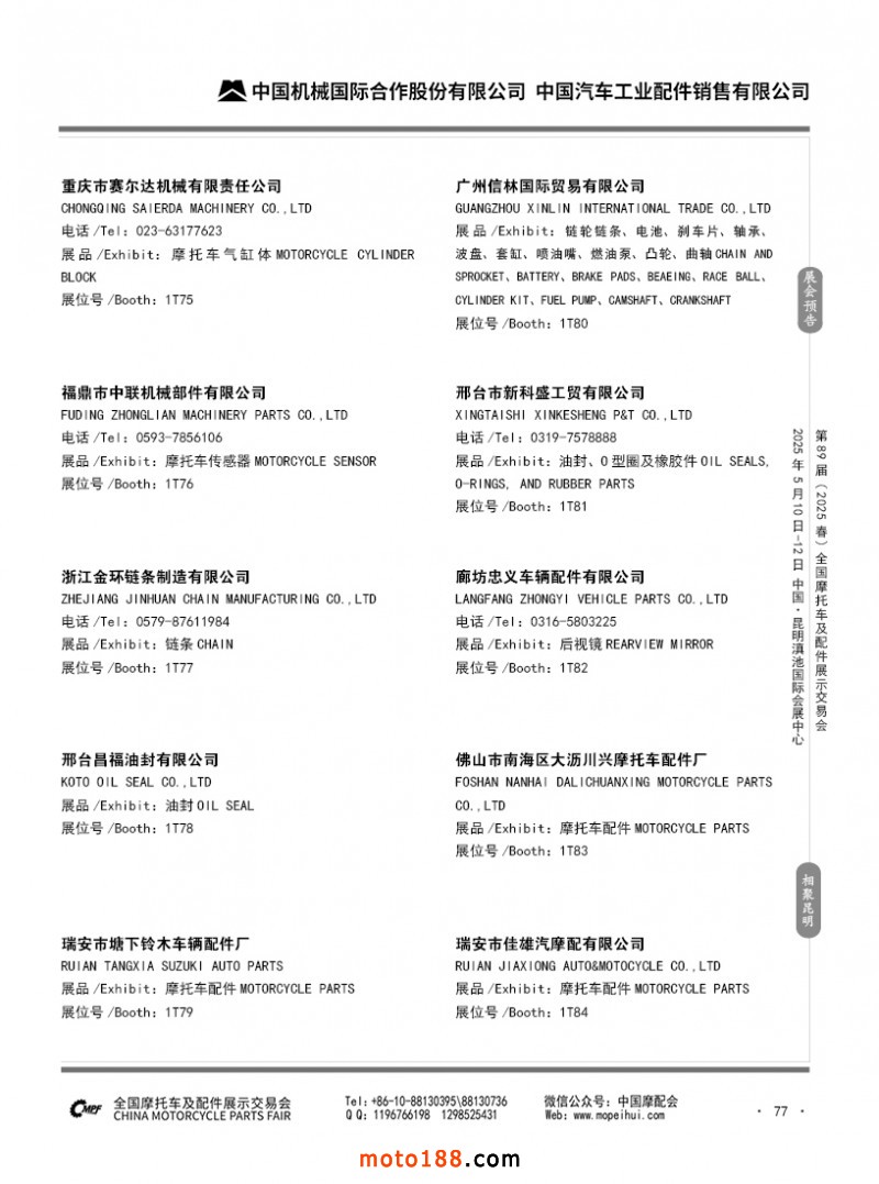 內69-188 第88屆(2024秋)全國摩托車及配件展示交易會-廣州站參展企業信息