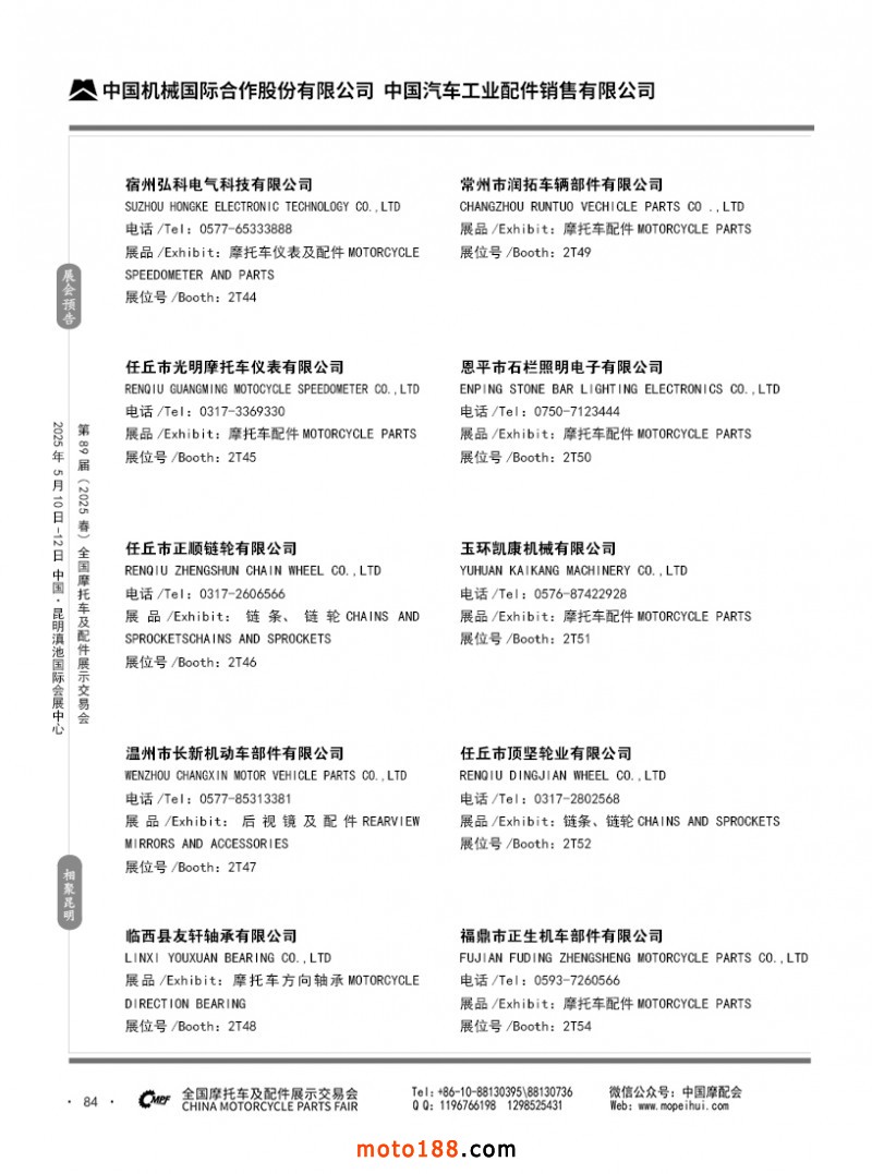 內69-188 第88屆(2024秋)全國摩托車及配件展示交易會-廣州站參展企業信息